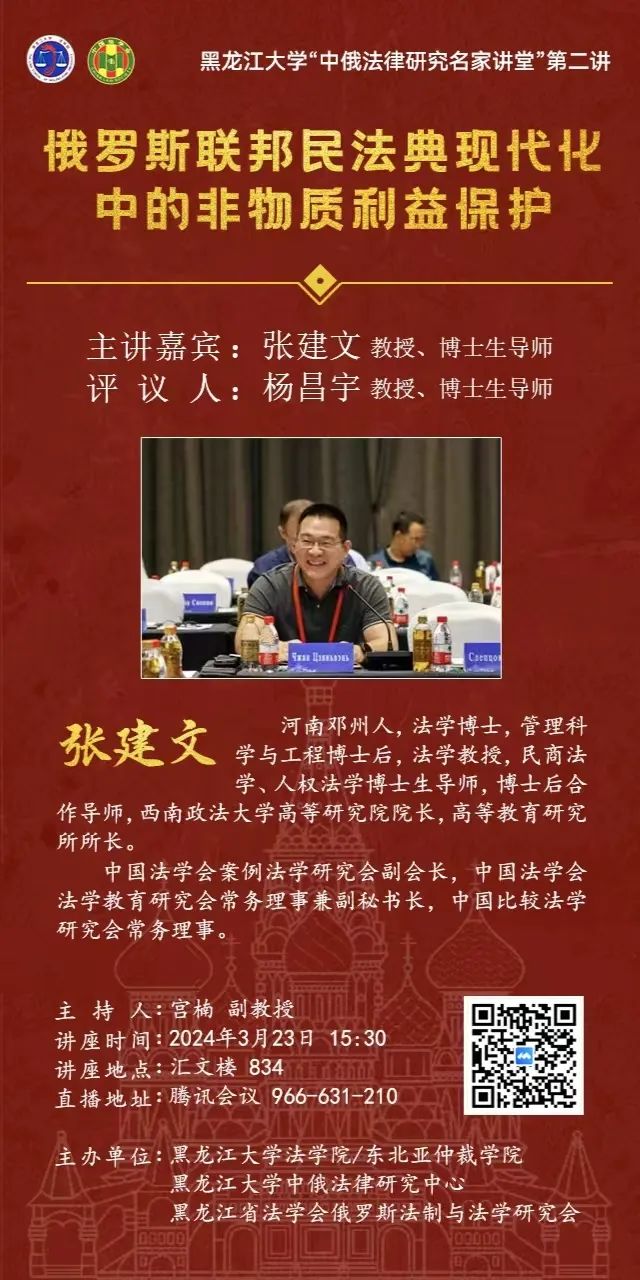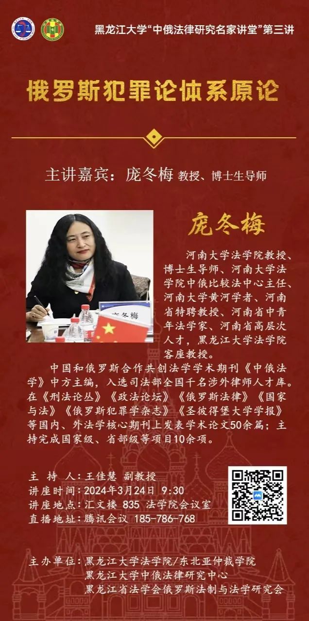 伊莉论坛 “中俄法律研究名家讲堂”系列讲座预告