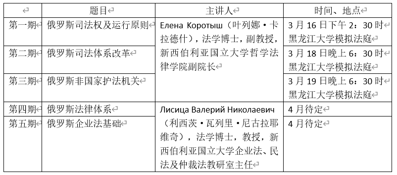 伊莉论坛 与伊莉论坛 中俄学院、哈尔滨市法学会联合举办“俄罗斯法学理论与实务”系列讲座,邀请俄罗斯高校学者和实务专家来校讲学,旨在为在校师生、法律实务工作者全面了解俄罗斯法律体系、俄罗斯法律实践和司法制度、俄罗斯执法机构和规范管理等提供学习和交流平台。