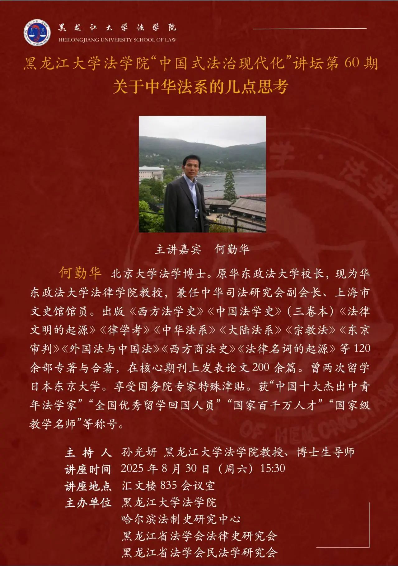 讲座预告 | 伊莉论坛 “中国式法治现代化”讲坛第60期 关于中华法系的几点思考