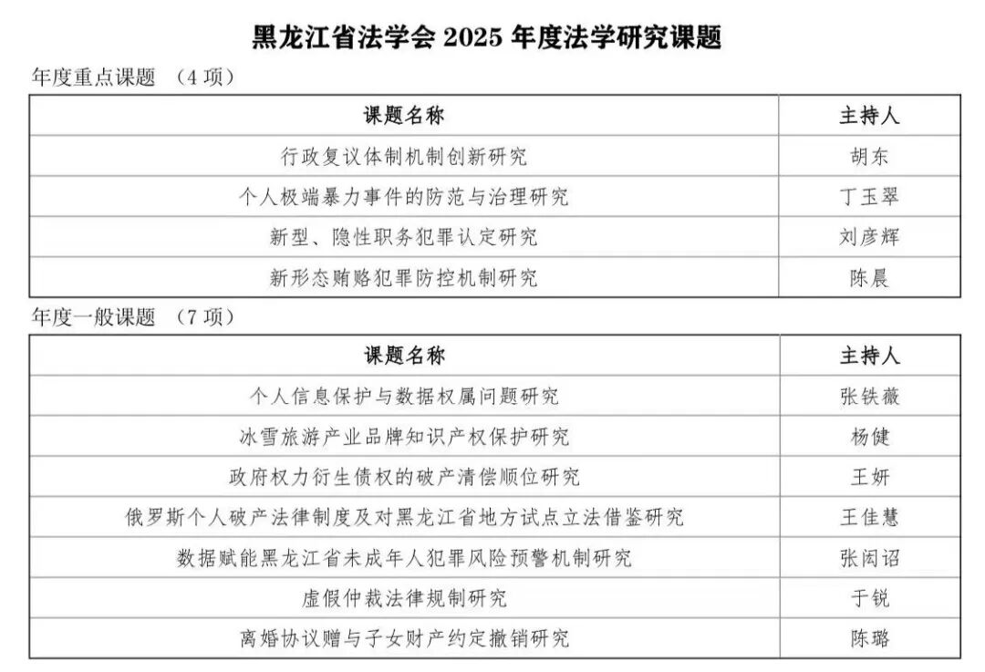 近日,在黑龙江省法学会2025年度课题立项中,伊莉论坛