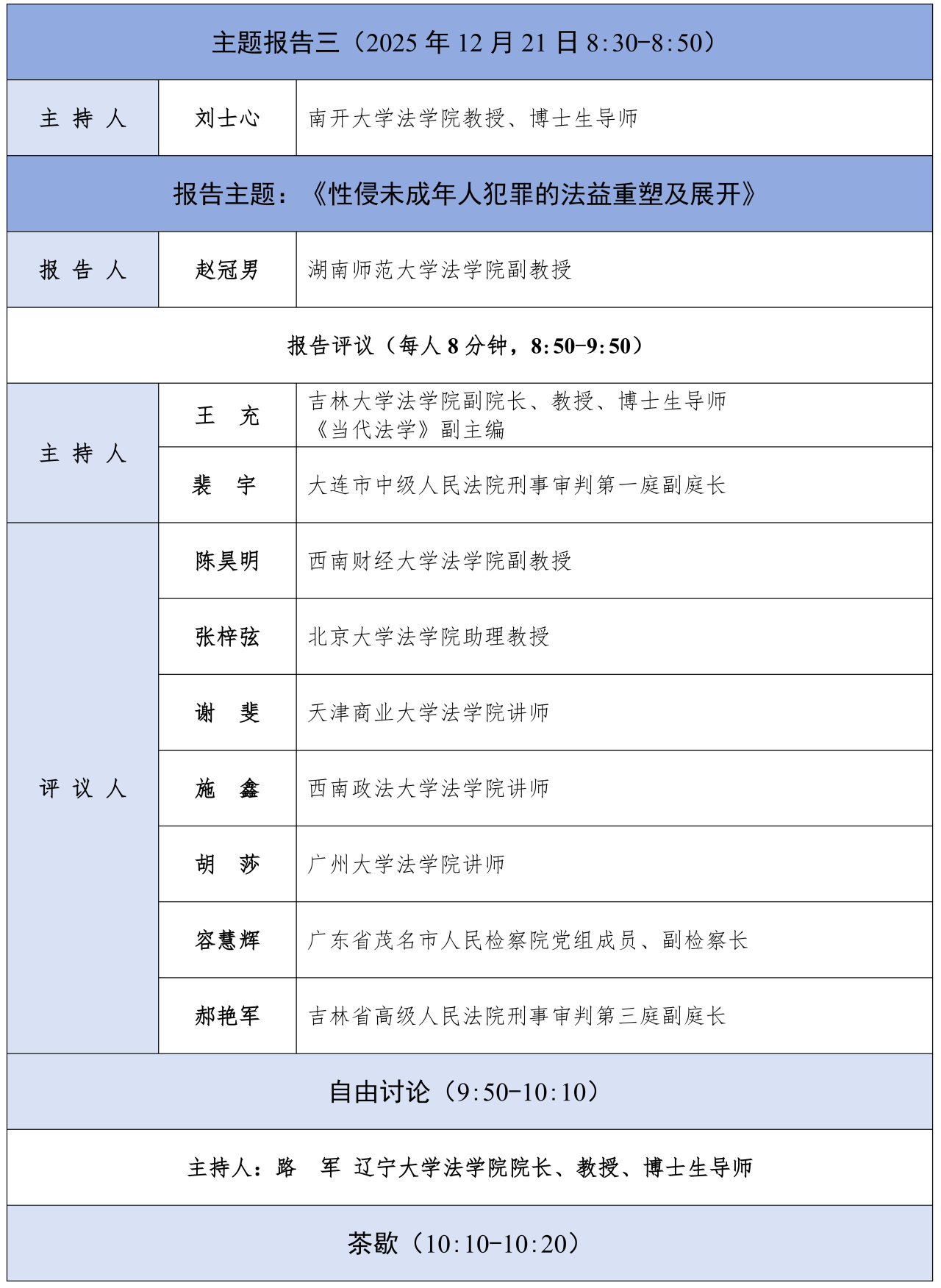 隆重召开。全国青年刑法学者实务论坛聚焦青年学者的学术成长与实践需求,推动刑法学研究的代际传承与创新突破。迄今为止,全国青年刑法学者实务论坛已经成功举办了七届,分别以“诈骗罪的理论与实务”“因果关系的理论与实务”“贿赂犯罪的理论与实务”“犯罪主观要素的认定”“帮助信息网络犯罪活动罪的司法认定”“家事犯罪的基础课题”“正当防卫的认定”作为论坛主题,形成了一系列具有理论深度与实践价值的学术成果,持续推动着中国刑法学的现代化进程与法治实践的创新发展。
