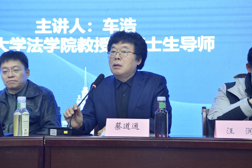 教授、博导蔡道通指出理解法律存在三个层次:法律之内、法律之外与法律之上。他指出主讲人正是从“法律之上”的俯瞰视角,融汇文学、心理学、社会学等多学科知识,揭示了法条背后的社会、经济与政治逻辑。针对秩序,他将其区分了两种形态并且进一步强调,社会必须为不满情绪提供制度化的“排气口”,如体育赛事,以动态、辩证的视角理解秩序,避免高压下的系统性崩坏。对待犯罪与违法,社会也应秉持“没有人是天生的犯罪人”的理性立场,尊重其基本权利,这才是健康秩序应有的底色。