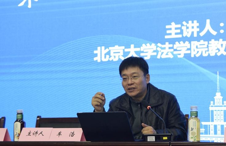 董玉庭教授首先介绍了车浩老师以及四位与谈人。随后,车浩老师以《法律与秩序》为主题展开讲座:首先,秩序作为法律的核心价值,其内涵体现为法的安定性与制度的结构性,以一致性、连续性和确定性维系社会运行,并为公共安全提供根本保障。车浩老师还指出人类对秩序的深切追求,源于三重深层逻辑:一是自然规律的约束,二是特殊的审美偏好,三是心理上依赖经验以守护尊严的内在需求。此外,在社会治理中,法律承担着在无序混乱与专制压迫之间建立平衡的使命,通过法治同时约束个体行为与公权力,而秩序的生成始终伴随着“自生自发”与“人为构建”两种路径的博弈。车老师表示,必须认识到法律的作用有其限度与阶段性,它本质上是“治国”之器,往往滞后并依附于既有的社会土壤。这一点在中国刑法中尤为凸显:理解“非法经营罪”等条文必须将其置于“社会主义市场经济秩序”这一持续变动的整体背景中,其边界的模糊正反映了上层秩序在计划与市场、管控与自由之间的动态张力。因此,法律并非僵化的文本,而是根植并作用于社会秩序的生命体,真正的法律思维要求我们超越机械释法洞悉条文背后流动的秩序逻辑与时代语境。