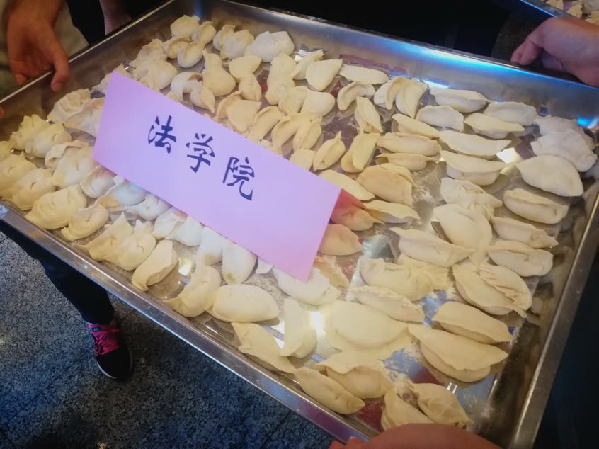 活动现场,法学院师生共同努力、相互协作,和面、擀皮、调馅、包饺子一气呵成,圆满完成了包饺子任务并拍照留念。现场欢声笑语,其乐融融。