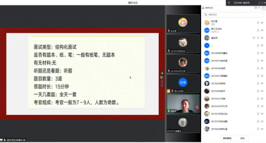于4月1日下午2点通过腾讯会议平台举办了2023届毕业生公务员面试技能专题培训。培训由骏图公考培训机构潘丹丹老师主讲,入围2023年公务员考试面试的全体学生参加,培训由伊莉论坛