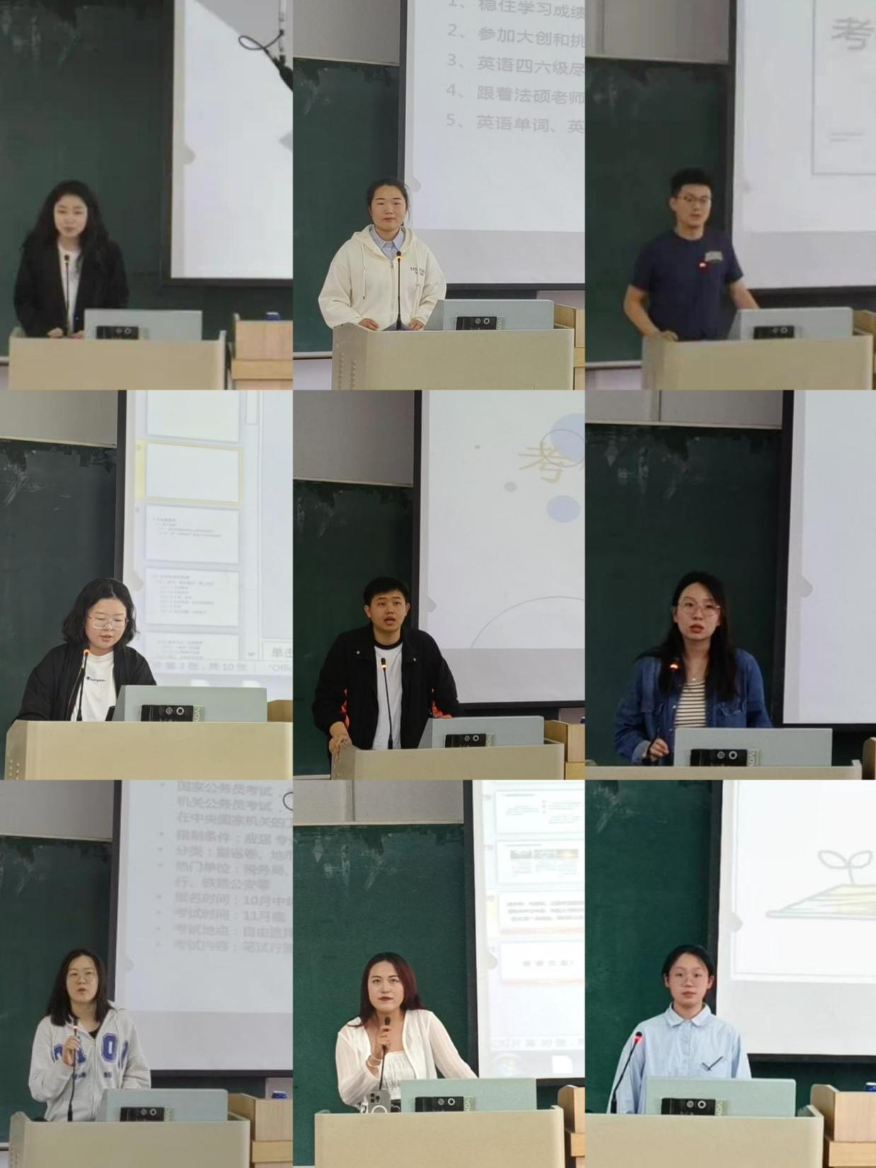 在考研保研方面,毕业生们详细的向大家指出了保研和考研各自的优缺点以及保研需要提前做的准备,并强调各位考研的同学应该做好详细的复习规划。在就业方面,他们结合自己的求职经历为与会同学们提出了很多建议。在考公方面,向同学们分享了公务员考试各个阶段应当注意的事项,总结了许多笔试、面试技巧,以及各个考试科目如何进行备考。在法考方面,分享了优秀毕业生们在本科、研究生学习阶段的备考经验,为同学们介绍法考的复习准备与答题技巧。