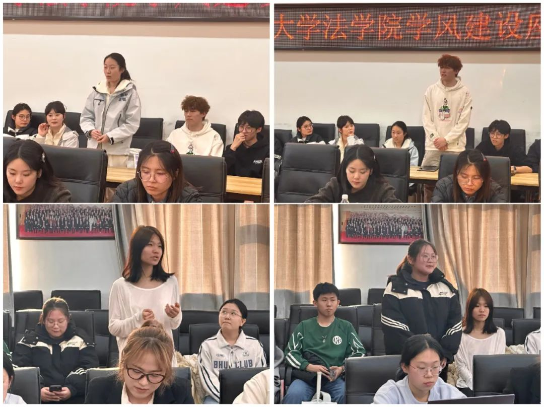 随后,各年级学生代表依次发言。研究生代表分享了自己的亚冬会志愿者经历和考研保研经验,并对未来职业选择做了详细规划;2021级学生代表就备战考研等方面进行交流,鼓励低年级同学提前做好准备;2022级学生代表分享了自己假期期间的社会实践与志愿服务经历,鼓励同学们积极参与社会实践,丰富个人阅历;2023级学生代表表示新学期将合理分配学习与学生工作时间安排,在保证学业成绩优异的同时,更好地为学院服务;2024级学生代表在经历了一学期的大学生活后对接下来的日子更加期待,同时肯定了今天座谈会召开的意义,表示自己在学生学姐的讲述下收获良多。