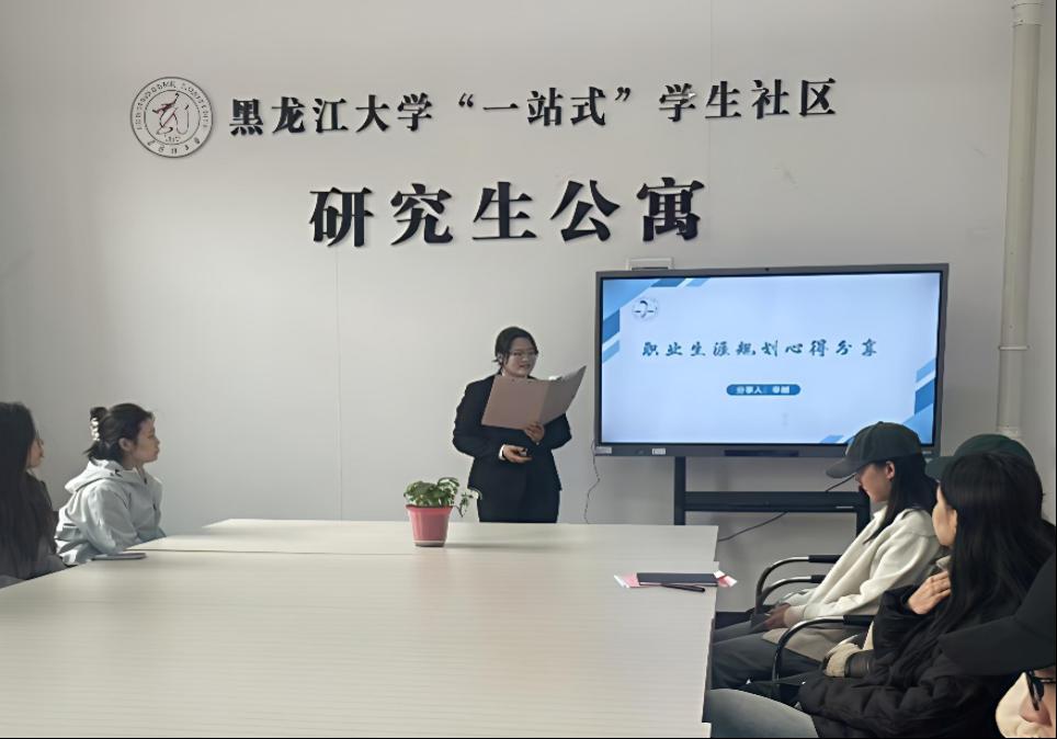 下沉就业指导与帮扶,引导学生树立正确职业观与就业观,提高职业规划能力,于4月1日在“一站式”学生社区开展职业生涯规划经验分享会。第12届黑龙江省大学生职业规划大赛银奖获得者、2022级本科生辛越进行职业生涯规划相关经验分享,各年级学生代表参加本次活动。