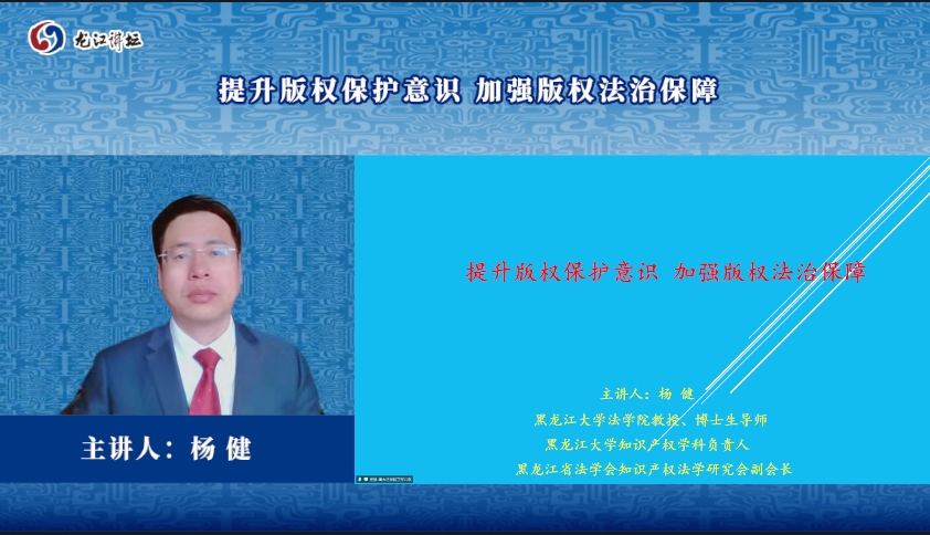 博士生导师杨健教授为省社科联、省文旅厅、省文联等单位开展知识产权专题讲座。讲座上,杨健教授围绕中国式现代化进程中版权保护与法治建设的关键议题展开,借助一系列贴近生活的典型案例,深入解读当前版权保护的现状与挑战。不仅系统阐释了版权相关法律法规,还为听众细致普及了切实可行的维权技巧,助力提升公众版权保护意识,推动我国版权事业健康发展。