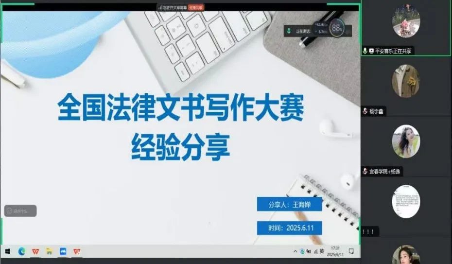 开展全国法律文书写作大赛经验分享,主讲人为第七届法律专业学位研究生法律文书写作大赛三等奖,2023级法律硕士4班心理委员王海婵。
