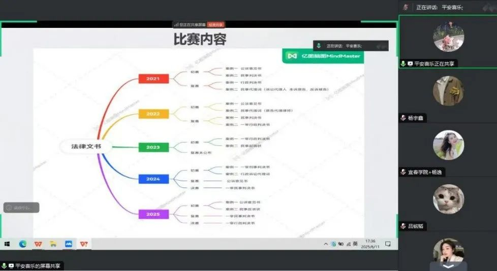 王海婵从大赛情况、备赛经验、注意事项等三方面对全国法律文书写作大赛进行经验分享。首先概括了命题规律并详细讲述了赛事等级、比赛时间、赛制以及比赛内容,进行了系统清晰的梳理。在备赛经验方面,讲解了法律文书基本写作要求,分别对初赛、复赛以及决赛命题等角度深度解剖,用简洁凝练的语言对关键技巧进行概述。同时,着重解读格式规范、逻辑分析能力以及法律检索能力的重要作用。