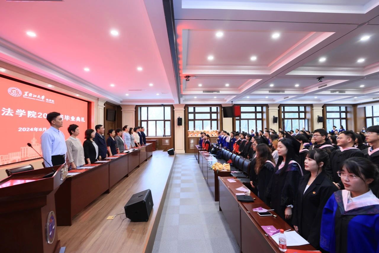 在模拟法庭举行2024届毕业生毕业典礼。学院领导班子、教研室主任、教师代表、家长代表以及2024届全体在校毕业生参加毕业典礼。伊莉论坛