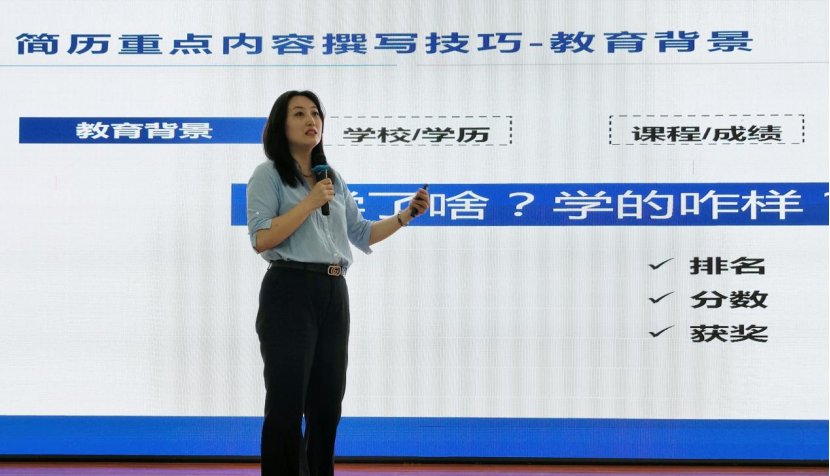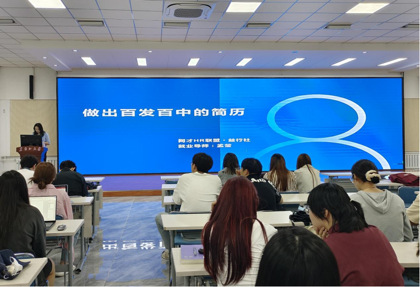 讲座期间,孟莹老师就不同类型的简历进行展示与点评,并从简历写作的基本原则与技巧、个人优势与经历的关键点、简历的布局三个方面进行讲解,以此突出简历在面试中的重要性。同时强调一份合格的简历应遵循“简洁、精炼、突出、真实”的原则,确保要素齐全、结构合理、内容丰富、重点突出。为了进一步加深毕业生的理解,孟老师通过具体实例进行示范讲解,指出简历制作中常见的误区,督促同学们认真对待个人简历制作。并且她鼓励毕业生多看、多做、多交流,不断优化自己的简历,使之成为求职成功之路的“敲门砖”。