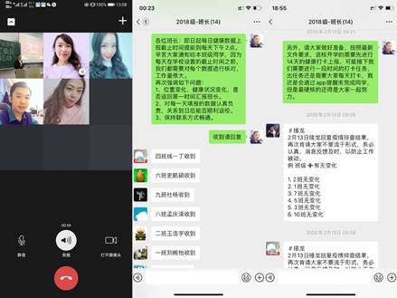 一是通过微信工作群、电话通知、视频会议等多种方式,及时传达学校疫情防控工作精神和要求;