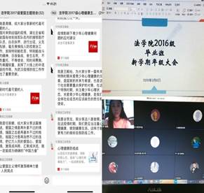 二是精心教学,育人有方。线上教学需要大量的前期准备工作,对比课堂教学要有完全不同的教学设计、丰富的音视频资料、网络设备和环境的支撑等。这给文科背景浓厚的学院教师带来了较大的挑战,学院积极组织开展线上培训,就如何建立课程、发布通知资料、录制课程等细节进行了深入交流和探讨。老师们通过多种线上平台和直播软件认真制定了自己的课程计划、应急预案等,多渠道与同学们进行交流,及时进行学业指导和课程解答。研究生各位授课导师快速响应,克服疫情时期的课堂考勤不便、线上教学模式生疏等各种困难。以法律史专业孙光妍老师为代表的教授们,主动参与、学习线上教学新模式,优化调整授课思路和内容,不断探索并丰富完善自身教学特点。