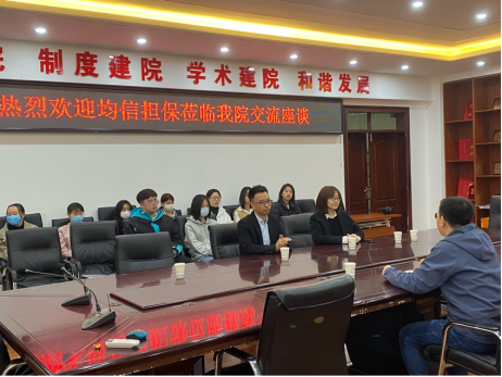 首先,均信担保法务部经理鄂宇介绍了公司以及法务部的基本情况,对业务部门做了详细介绍,并对面试流程、公司薪资体系以及组成结构进行了充分讲解。鄂宇结合自己走出校园后的经历和感受和学院师生们进行座谈交流。他倡导大家及时就业,并用生动的事例指导同学们如何适应职场环境、在职场中自主学习。并且鼓励自己的学弟学妹们“要有梦想但是不要好高骛远,有未来但是也要脚踏实地。”