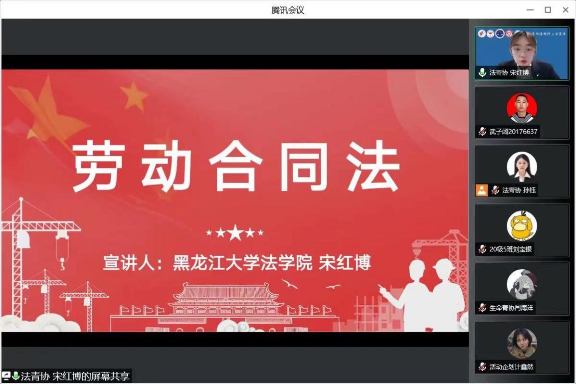 青年志愿者协会主办、五院联合共同举办的线上云宣讲“普及劳动法律知识,维护群众合法权益”普法宣传活动取得了圆满成功。