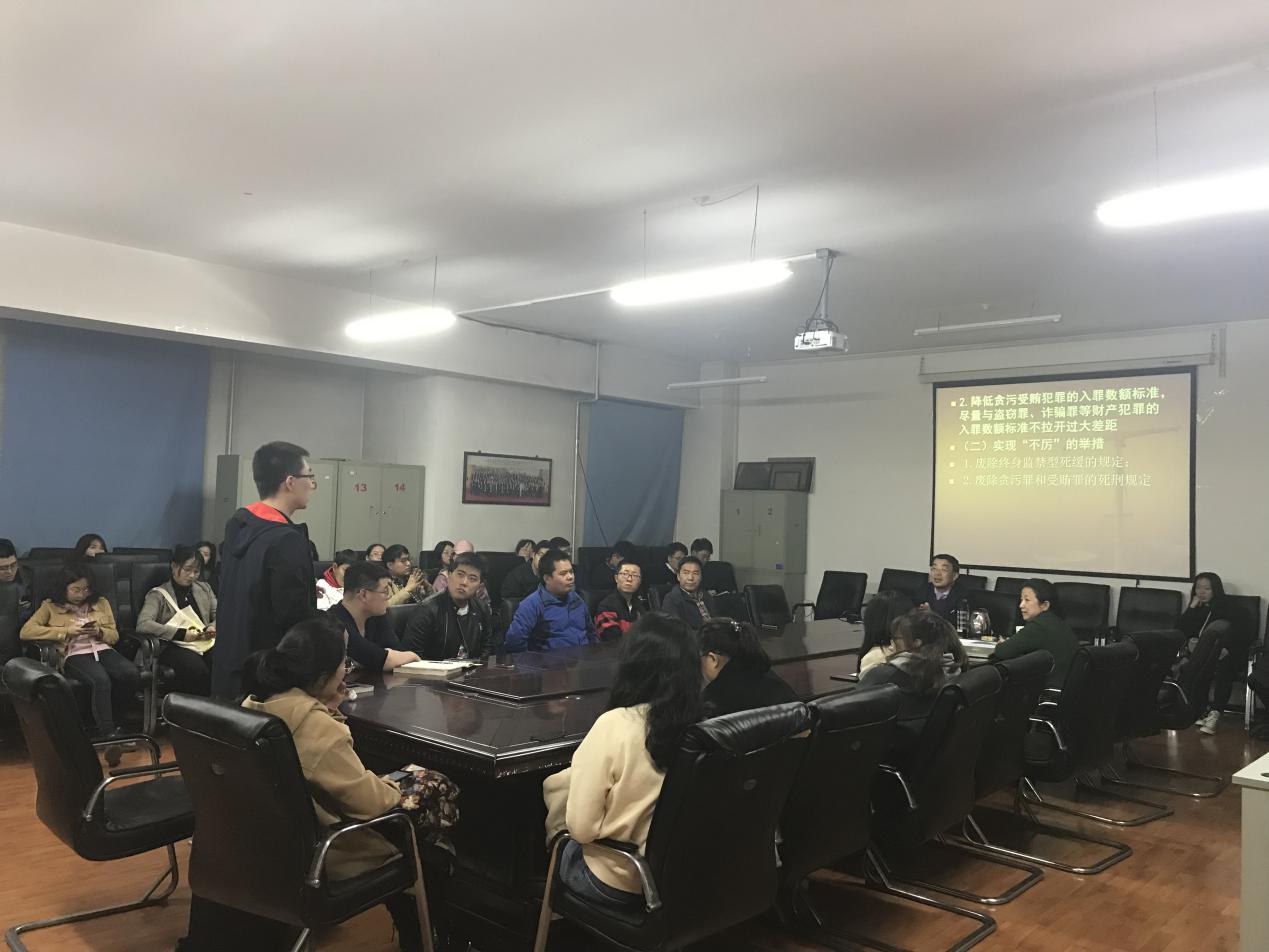 在对1997年刑法和《刑法修正案(七)》的解读后,王志祥教授重点讲解了《刑法修正案(九)》关于贪污贿赂罪的修订及相关问题。王志祥教授指出,《刑法修正案(九)》对于贪污贿赂罪做出了较多修改,其中由单纯的计赃论罚代之数额加情形的认定。以及取消绝对确定的死刑。这都体现了严而不厉的立法思想。同时关于行贿犯罪的修改也在一定程度上体现了严而不厉的立法思想,如增设了对有影响力的人行贿罪,实现了行贿受贿的双向构罪的对合犯罪。在对《刑法修正案(九)》进行讨论时,王志祥教授对 “终身监禁”这一专为重大贪污贿赂案件设置的刑罚与同学们进行了深入的沟通和交流。王志祥教授认为对“终身监禁”这一刑罚设计的解读,应视为加重生刑,而非死刑(立即执行)的替代刑,并阐述了自己的理由,引发了同学们的深入思考。