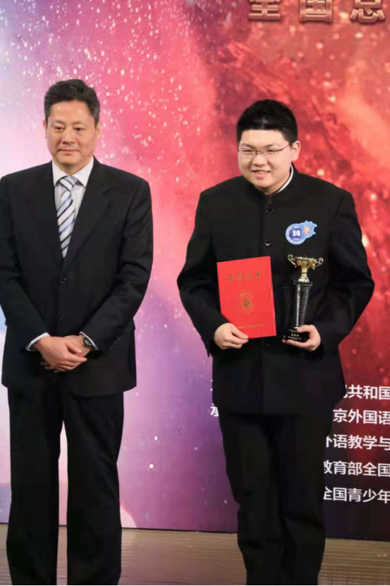 高校组演讲比赛分两轮进行,第一轮是自命题演讲,第二轮是现场抽题进行即兴演讲。方誉淇同学在第一轮比赛中,自命题演讲题目为《你看!这碧水蓝天》。其凭借着稳健的台风,高超的语言表达能力,力压群雄,以小组第一的成绩进入决赛。第二轮比赛,方誉淇抽到的题目是根据张伯苓先生的“爱国三问”进行即兴演讲。他在演讲中倡导:应该在“四个自信”中坚定国家认同,在国家认同中垒砌爱国情怀;在吃苦中让爱国情怀落地,在现实的挑战中,锤炼一颗百折不回的爱国心。