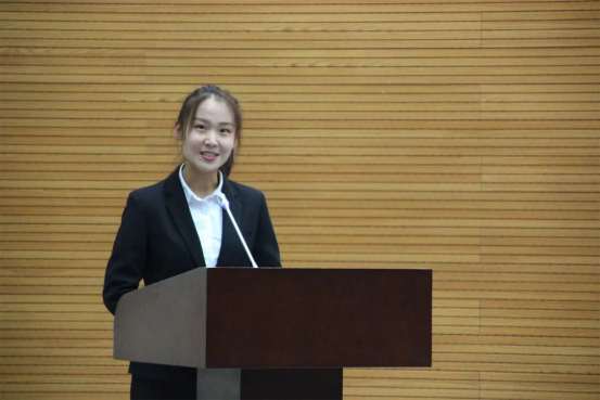 新生代表贾卓娅同学在发言中表示,会在将来的学习生活中,努力提高自己的实践能力,树立远大理想,虚心勤奋学习主动承担法制建设的重任,为祖国的法制建设事业贡献力量。