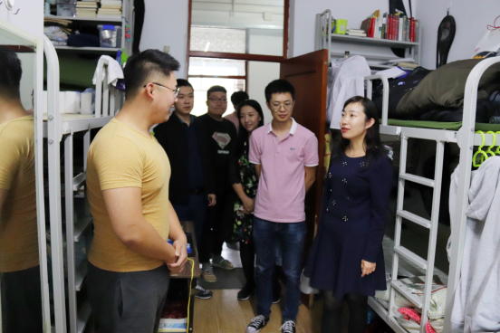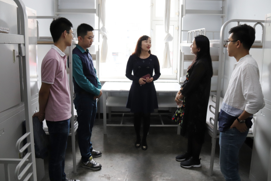 党委副书记、副院长魏双老师,团委书记王业超老师,团委副书记邵俊峰老师,常明阳老师,杨译迪老师走访寝室。
