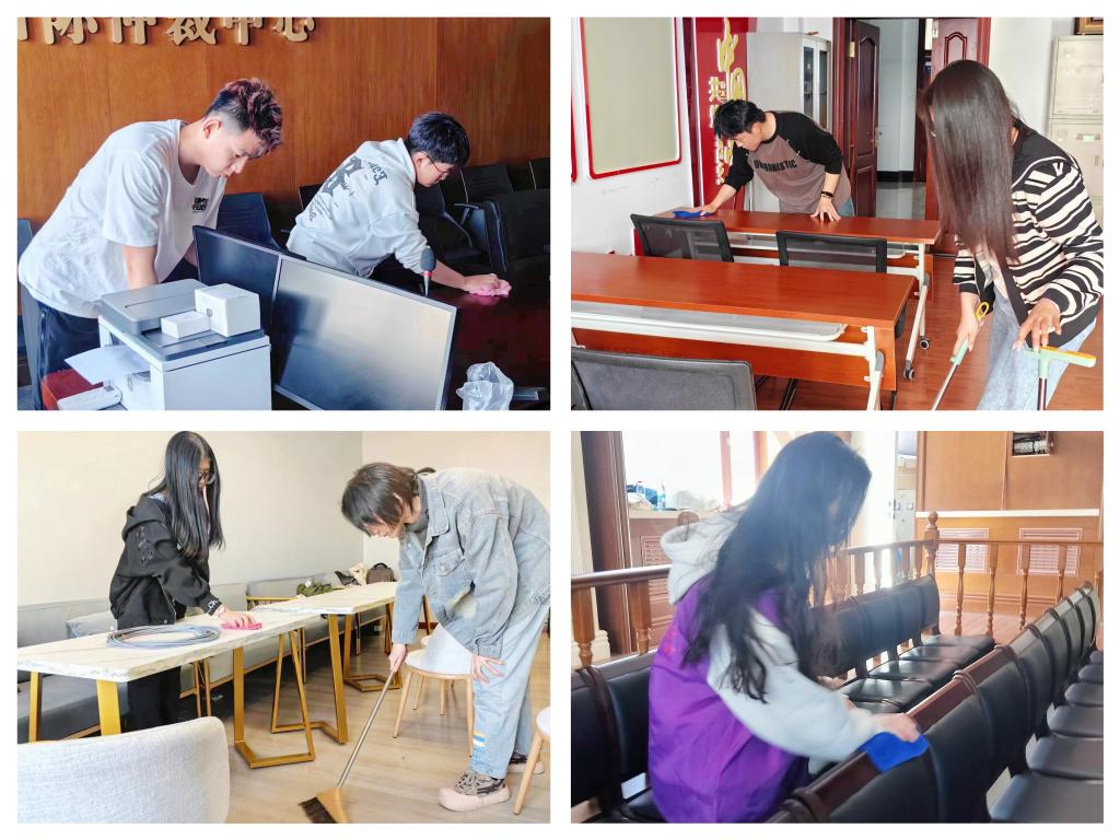 青年志愿者协会的志愿者们深入校园,积极开展劳动节志愿清扫活动。