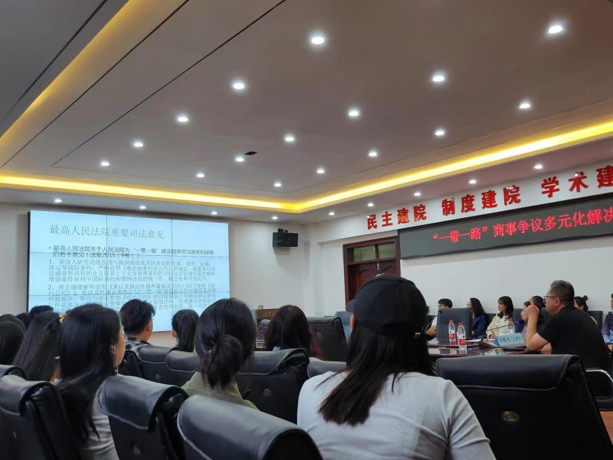 WTO法研究会副会长、中国社会科学院国际法研究所国际经济法室主任、博士生导师刘敬东教授在汇文楼835会议室进行“一带一路”商事争议多元化解决机制新进展的主题讲座。