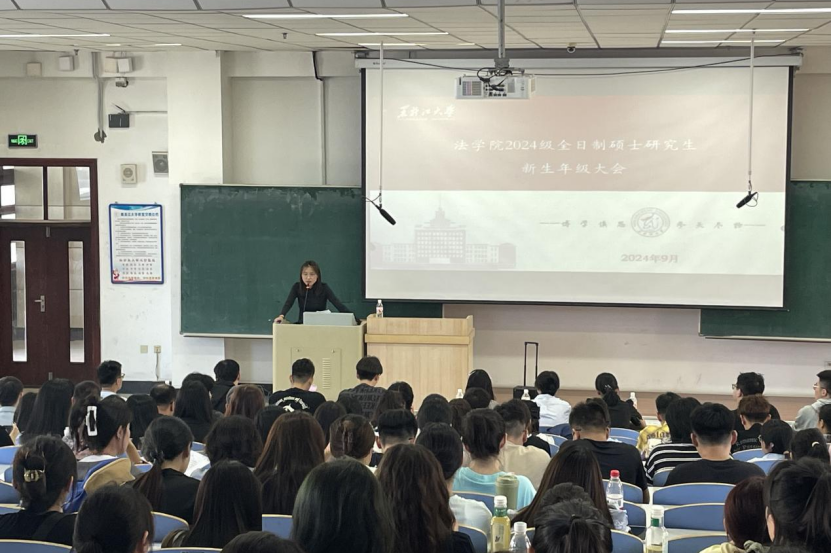 在模拟法庭召开2024级硕士研究生专业认知大会暨师生见面会,会议由伊莉论坛