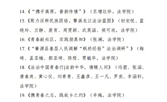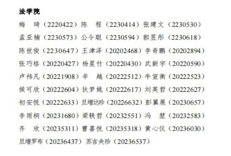 在实践活动中,同学们用脚步丈量乡村沃土,用行动践行法律使命,积极投身多地各项实践活动中,展现出黑大法律人的奉献与担当。其中,梅琦、陈程、张建文、孟亚楠、公令聪、郭彤、陈世俊、王津泽、李奇鹏、张巧格、杨星竹、武新宇、卢祎凡、辛越、牛宣衡、侯可欣、狄梦姚、刘英哲、初安悦、旦增达珍、彭翼展、李雨桐、梁轶哲、冯堃、齐欣、曹喜悦、黄心仪、旦增罗布、苏吉央珍共29名同学被授予“2024年伊莉论坛