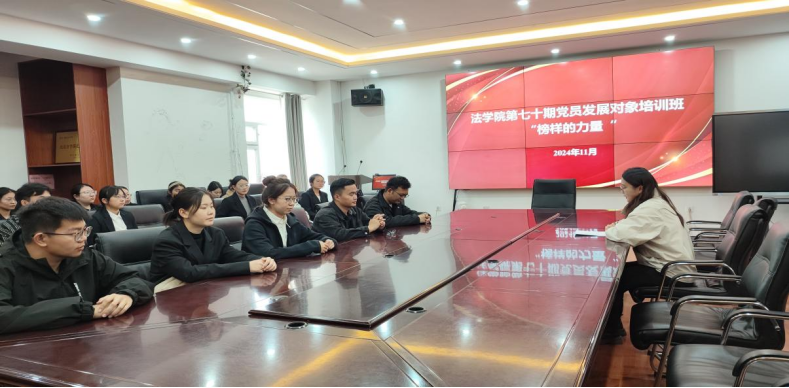 第七十期党员发展对象在汇文楼835会议室开展了“榜样的力量”宣讲活动。本次活动邀请优秀学生党员、2022级研究生(硕士)第一学生支部书记温纯结合自身党员经历进行宣讲,通过分享自己作为支部书记在学习与社会实践中的亲身经历,鼓励学员们端正入党动机,坚定信仰追求,明确奋斗方向,努力向党组织不断靠拢。