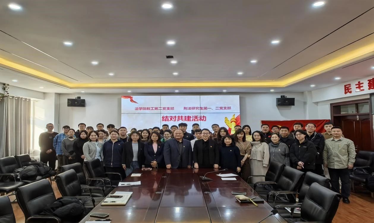 教工第二党支部与刑法研究生党支部在汇文楼835室开展了首次结对共建仪式。学院党委书记孙世萍、教工第二支部全体成员,刑法研究生党支部成员出席活动,教工第二党支部书记曲志勇主持会议。