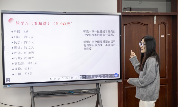张慧同学详细介绍了法考的注意事项、分值分配及三类执业证书的考取条件和适用范围,针对性地推荐了全面实用的备考资料及网络资源,并为大家制定了详尽的时间规划表,帮助同学们合理安排时间,提升复习效率。