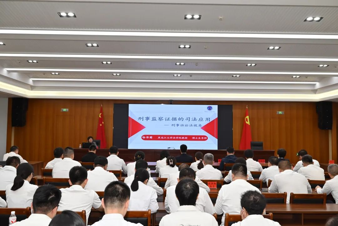 会后,哈书菊从刑事诉讼法视角以《刑事监察证据的司法应用》为题开展专题讲座。她结合典型案例,紧扣监检证据衔接规则的核心要义,从证据与证明、证据能力与证明力、举证责任与证明标准、新旧监察法对比四大维度,为道里区纪检监察干部讲授了一堂生动深刻的理论课程。