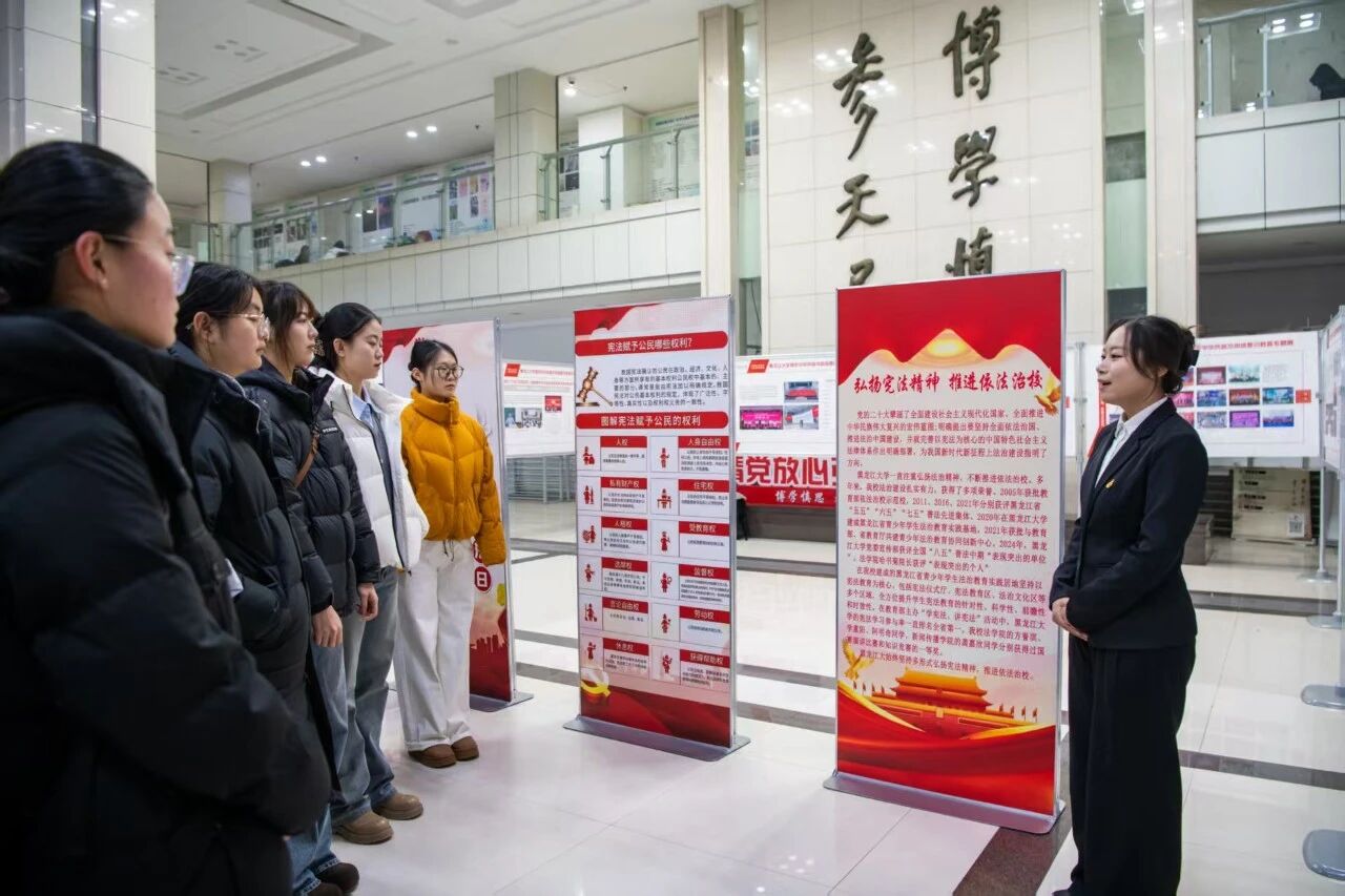 本次活动以主题展览为载体,系统展示了宪法的基本原则以及核心价值,旨在通过丰富多样的展览内容和形式引导全校师生深入学习宪法、进一步提升法治意识,为推进宪法深入人心提供有力支撑。